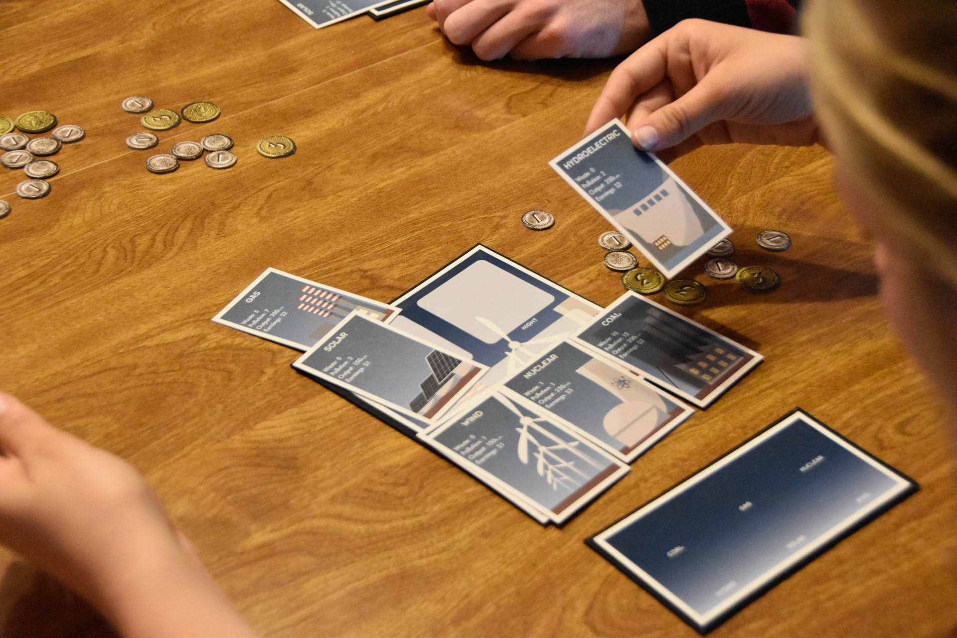 This game educates players on the benefits of an electrical grid that uses nuclear energy plants in conjunction with other renewable resources such as wind and solar. Players compete by constructing the most productive and environmentally friendly energy grid possible. The most successful strategies will employ a variety of renewable resources as well as some nuclear energy cards.